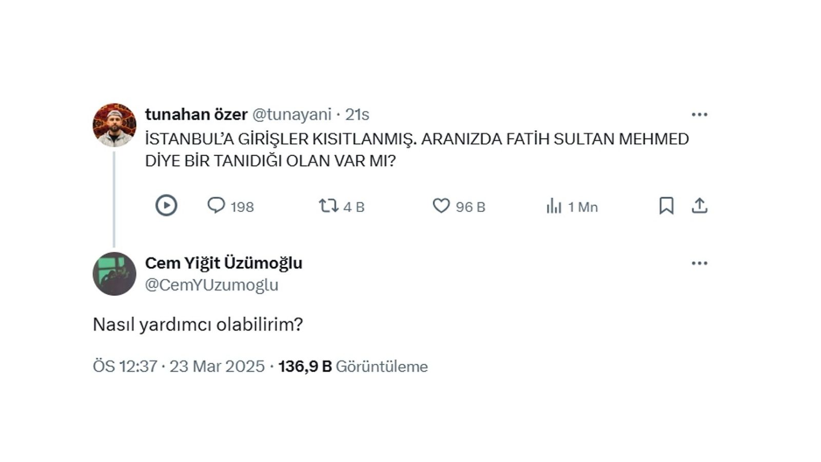 Bir Kullanıcının “Fatih Sultan” Çağrısına Cem Yiğit Üzümoğlu’ndan Yanıt!